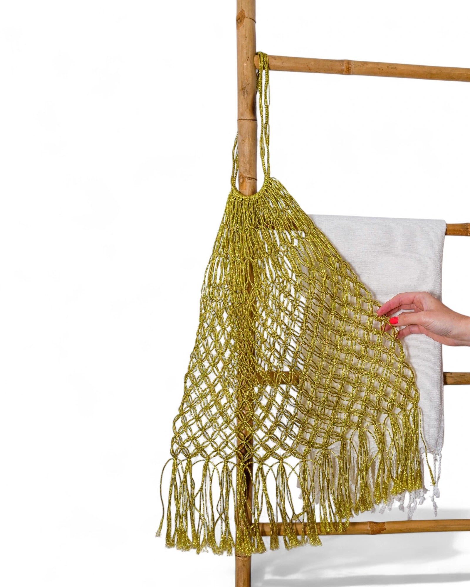 Le sac filet Jaya, fabriqué en véritable fil de pêche, est entièrement fait à la main. Léger, résistant et lavable, il vous accompagne de la plage à la ville sans jamais perdre son éclat. Rincez-le après une journée au soleil, et il est comme neuf ! Son petit plus : un dustbag assorti, parfait pour y glisser vos essentiels ou l’utiliser en pochette.