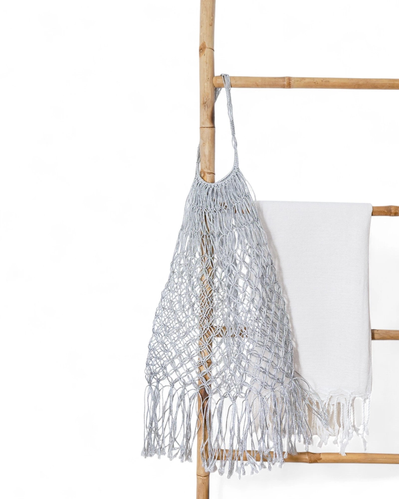 The Jaya mesh bag, handmade from genuine fishing line, is crafted with care by our artisans. Lightweight, durable, and washable – perfect for beach days and summer evenings. Just rinse it under the shower and it’s ready to go again! Comes with a matching dustbag, ideal for your essentials or as a clutch.