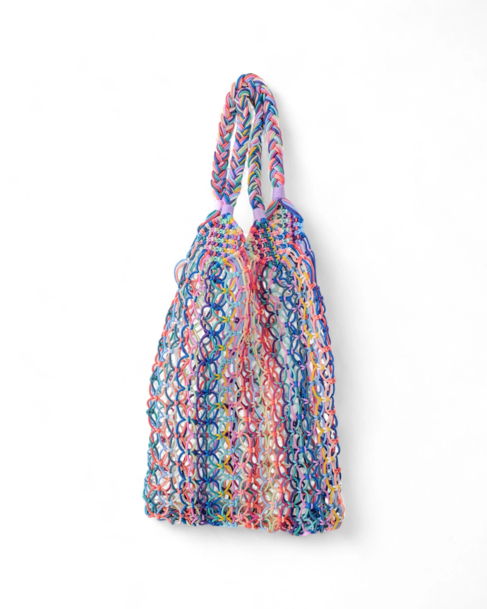 This colorful fishing line mesh bag comes in 7 vibrant color combos, designed to add a fun twist to your wardrobe. Lightweight, water and sand-resistant, and delivered with its protective dustbag, it’s both stylish and functional.